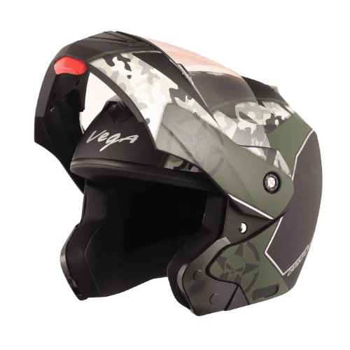 Vega Crux Dx Camouflage ISI Certified Smooth Matt Finish Flip-Up Helmet for Men and Women with Clear Visor